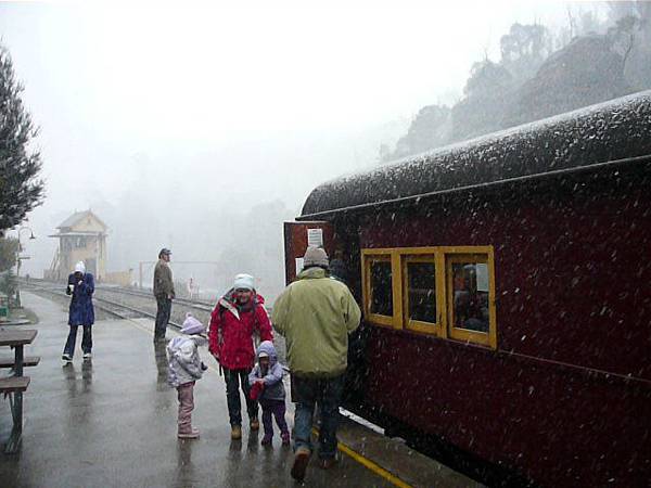 原本在回程雪梨的時候到 Clarence車站,也就是 Zig Zag Railway的起點看看修復的情形,但是時間不湊巧,經過的時候已經快天黑了,為了趕路,無法停下來。距離上次去搭 Zig Zag Railway已經十年了,我曾經在以前部落格寫過遊記,那是一個十分特別的經驗,當時奔上藍山的目的並不是搭蒸汽火車,而是想上山賞雪。藍山的海拔雖然不高,最高點的城鎮 Oberon大約 1500公尺左右,但是冬天只要水氣足夠,整個藍山幾乎都有下雪的機會,只是雪量不會很大,時間也不會太長,然而,唯一一次搭乘 Zig Zag Railway的經驗,卻讓我們碰上難得的大風雪。