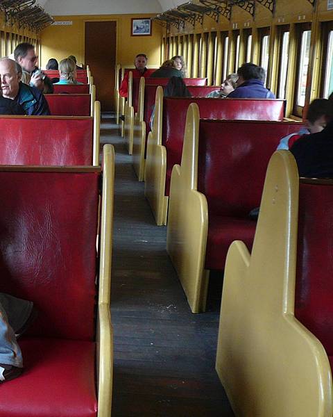 車廂內的座椅跟車體幾乎都是木製的,古色古香